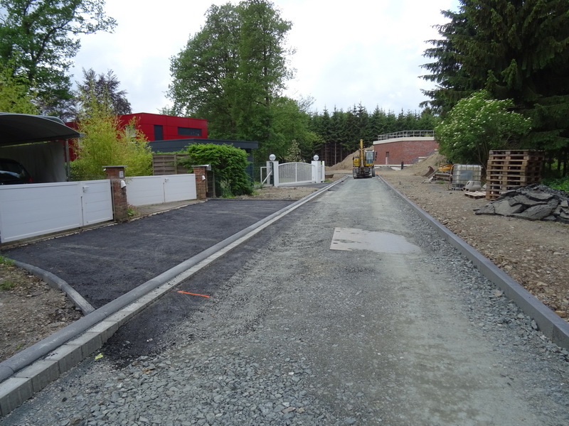 Die Anliegerstraße ist mit einer Breite von 3,75m mit Ausweichbucht erstellt worden. Am Ende der Sackgasse wurde der Wendehammer nue ausgebildet, auf der Haubergseite wurde ein Bankettstreifen aus Schotterrasen angelegt.